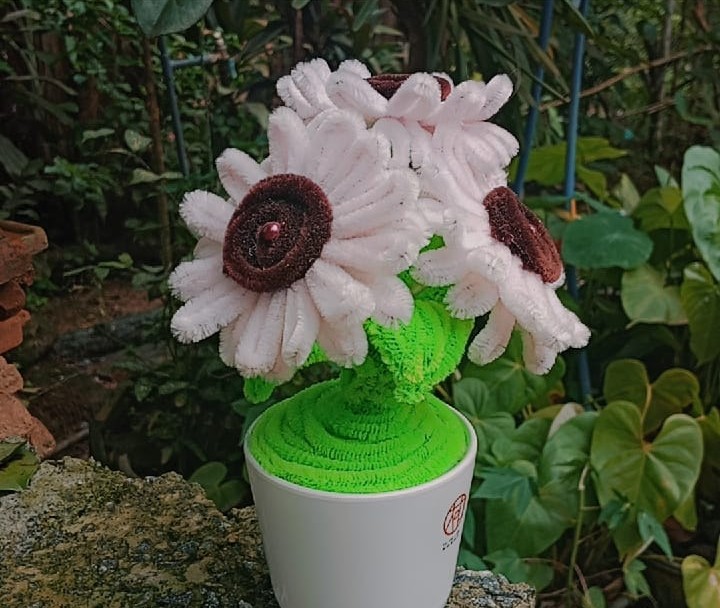 K.U.L PRODUCTSPipe Cleaner Artificial Flowers (3 flowers)Beautifully arranged in a white potHandmade craft with fine detailingIdeal for home decoration, gifts, and table décorLong-lasting and mainte... more details