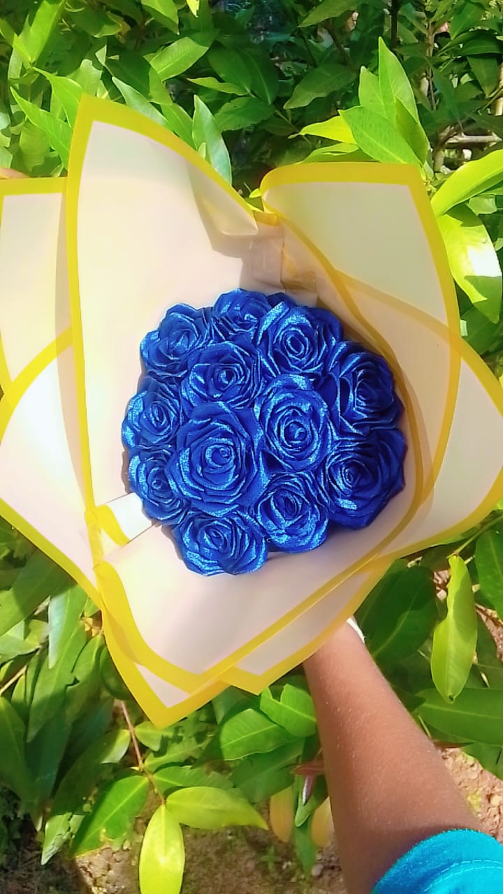 K.U.L PRODUCTSHandmade artificial flower bouquet with 12 rosesEach rose is approx. 1 inch wideEach flower has 20 carefully crafted petalsPrice: Rs. 1000/=Elegant blue rose designWrapped with dec... more details