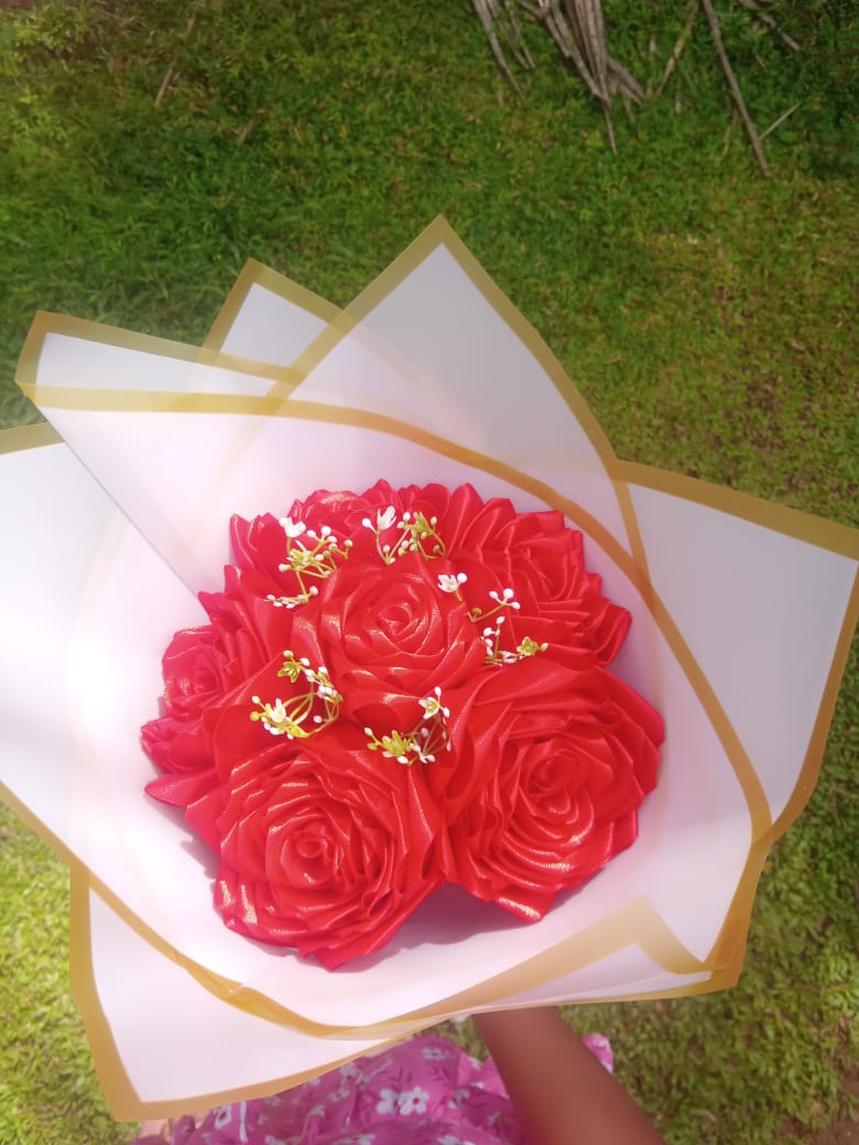 K.U.L PRODUCTSHandmade artificial flower bouquet with 7 rosesEach rose is approx. 2 inches wideEach flower has 40 carefully crafted petalsPrice: Rs. 2000/=Elegant red rose arrangement with white... more details