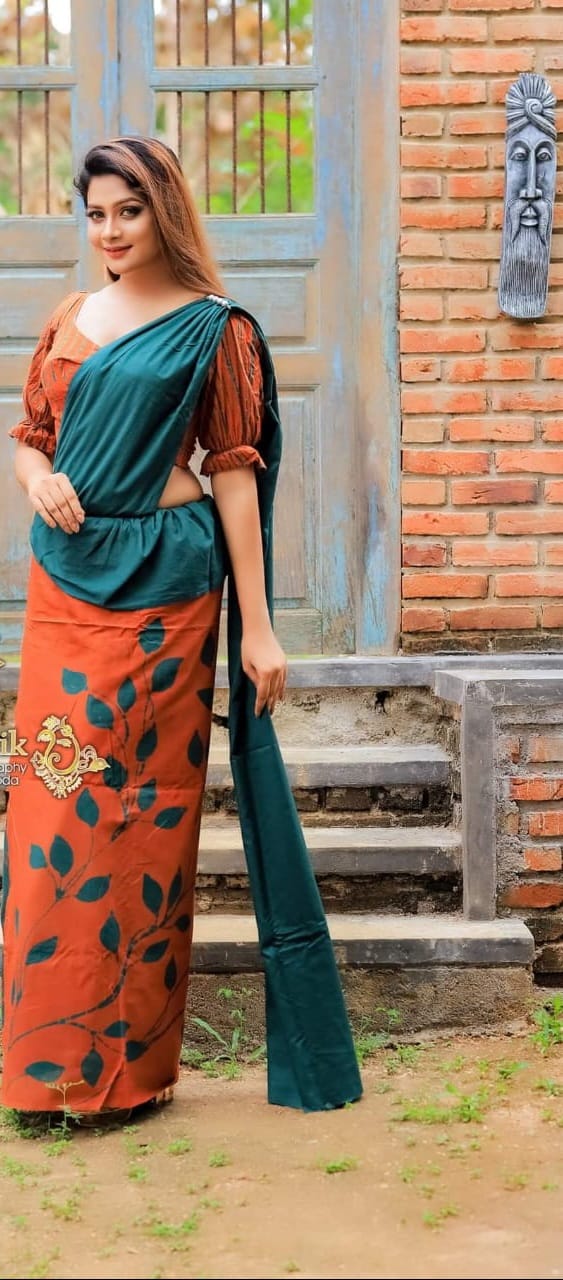 7-yard handmade batik saree in green and orange mixComes with a matching jacketHand-painted or handcrafted batik designSuitable for weddings, religious events, and special occasionsPremium quality fa... more details