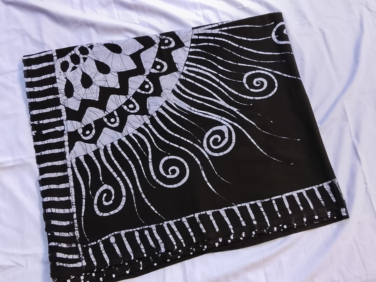 DENO FASHIONBlack and White handmade batik sareePrice: Rs. 7,000/=Attractive artistic batik patterns7 yards lengthComes with matching jacket piecePremium quality hand batik fabricIdeal for weddings, ... more details