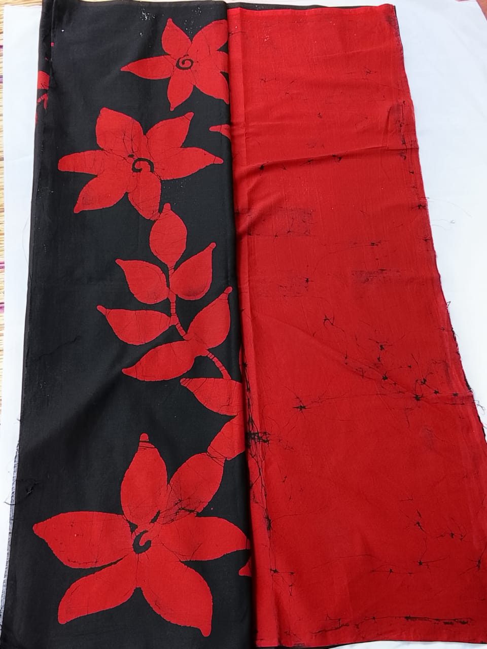 DENO FASHIONHandmade batik sareePrice: Rs. 7000/=Color: Red and black combinationLength: 7 yardsComes with jacket pieceElegant floral batik designComfortable fabric suitable for all occasions... more details