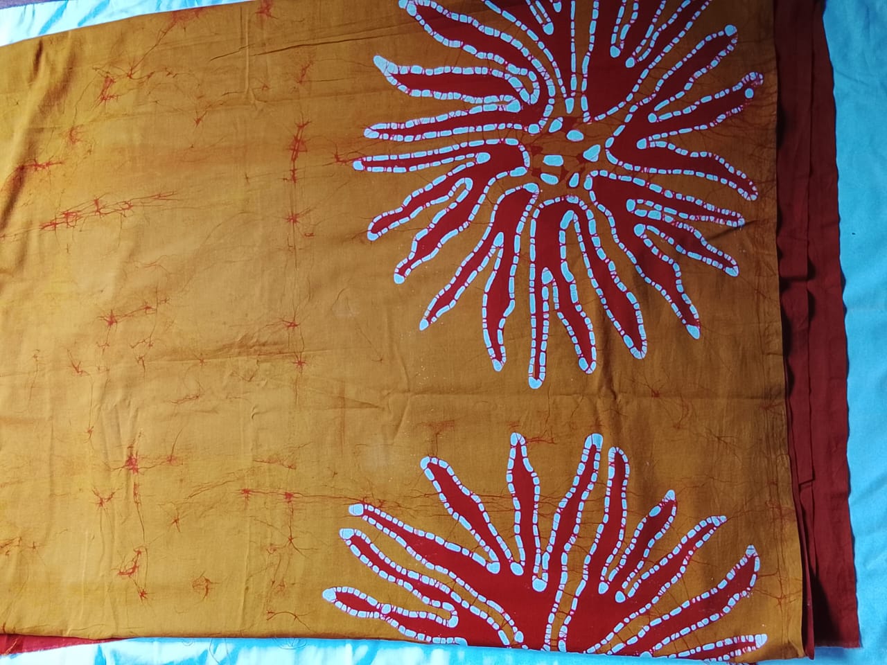 DENO FASHIONHandmade batik sareePrice: Rs. 7500/=Red, brown and white mixed colors7 yards length with jacket pieceUnique floral batik designComfortable soft fabricSuitable for casual and festive... more details