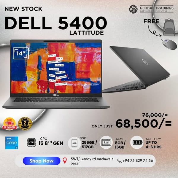 Brands: HP, Dell, LenovoCondition: Brand new arrivalsFeatures: Multiple configurations available (Core i5/i7, SSD, RAM upgrades)Availability: Wide range of models in stockWarranty: 3-month hardware +... more details