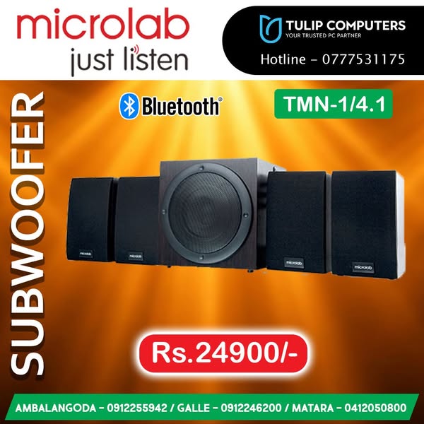 Brand: MicrolabProduct Range: Subwoofers, party speakers, soundbarsFeatures:Deep bass with subwoofersHigh-powered party speakersCrisp and immersive soundbarsIdeal for: Parties, home entertainment, ca... more details